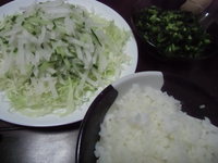 細く細かく切って(キューリも)