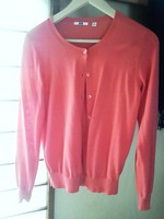濃いピンクのカーディガン。UVカットのカーディガンなので、まだまだ日差しの強い今の時期に丁度よいです。