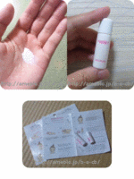 ![]() ![]() レビュー コスメ シャレコスキンケア サンプルセット 2012/7/20 (金) 19:41 すきま@キレイナビ 評価:★★★☆☆☆☆ ![]() ローションとプロテクトのセットです。 サイズは画像のような感じ。画像はローションのものです^^ 大体、プロテクトが人差し指の第2関節分くらいで、ローションが2.5関節分ほどの大きさです。 ローション 【SPF10、PA+】 プロテクト 【SPF25、PA++】 本項では、ローションをベースに書きます^^ 色味は牛乳のようです。テクスチャも、牛乳よりちょっとペタつく感じ。プロテクトも大体同じ。 早速塗ってみましょう。 手のひらにパール大の液(プロテクトは大豆つぶ大の液)をのせ、両手のひらで広げた後、 顔に「トントン」と置くようにして広げます。横すべりはしてはいけません。 顔に塗ってみて、これ自体が原因でかゆくなることはないです。でも、肌が敏感になった感じがします。ちょっと髪の毛がふれただけで、痒みを感じるようになりました。 しかし、色味がいいです。てっきり美白ローションかと思いました。 最初は、液体の白い部分が肌に白残りするんじゃないかと心配だったのですが、そんなことないです。 むしろ、それがいい味を出している感じです。ちょっと明るめのファンデーションを使った時のように、肌が程よく明るくなりました。 質感も、しっとりとしています。 ローションを塗った後は、水性のファンデーションかパウダーで仕上げます(プロテクトの場合はクリーミーファンデーションでもよし)。 感想として、洗顔やクレンジングをした後に肌がガサガサにならないです。 自分は、肌が敏感になってしまったので、仕上げまでしませんでした。 顔には使えそうにないけれど、体には使えそうです。 コメント(0) 無料サンプル シャレコスキンケア 美白・シミ対策 戻る キレイナビ![]() |