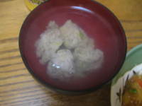 つみれのスープです。つみれはミキサーで作れば簡単ですが、片付けが大変なのでスーパーで買ってくることのほうが多いです。
