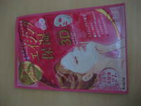 肌美精の立体マスク。顔に密着するように立体的なカットになっていてあごのしたのラインまで包み込んでパックできます。