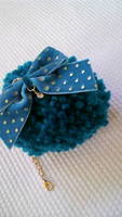 ブルーの大きめのポンポンとドット柄のリボン、