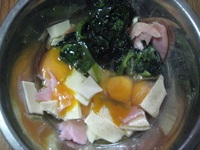 ![]() ![]() レビュー サプリ・フード ホウレンソウたっぷりポパイ卵焼き☆ 2011/11/17 (木) 10:22 めめここ 評価:★★★★★★★ ![]() わたしは貧血があります。特に妊娠中は、鉄剤の注射を打っているほどでした。そんな思いはわたしも娘にもさせたくないので、考案した卵焼きです。週一回は食卓に出します。 まず、ホウレンソウを良く洗ってゆでます。少し柔らかくなったら火を止めて、水にさらします。(水をさらすのはあくをとるためですが、今のほうれんそうは品種改良が進んであくが少ないのでさっとくぐらしてもいいそうです)それをしぼって、ざっくり切ります。ボールにホウレンソウ、卵(わたしのうちは人数が多いので4つ)スライスチーズ二枚(お好みでちぎっていれてください)、ハム、またはベーコン(コクが出るし、色がきれい)、牛乳湯のみいっぴくらいをボールにいれて、塩コショウをしてかき混ぜます。 画像は、これを全部入れたものです。こちらのほうが分かりやすいと思ってので・・・。それを、オオサジ1のマーガリンをいれて焼きます。フライ返し、または箸で混ぜながらいり卵ふうにやいてできあがり。お料理が上手な方は大きなお好み焼き風にやくと、きりわけやすいです。うちの子供たちは葉野菜は苦手なのでこうやって大量に食べさせます。野菜の苦手な小さいお子さんがいるママさんもぜひやってみてくださいね。ボールとフライパンでできるので、片付けもらくちんですよ。 コメント(0) フードその他 貧血 戻る キレイナビ![]() |