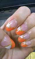 オレンジと白のダブルフレンチネイルです。