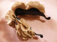 ベージュの花がたっぷりついたバナナクリップ。
