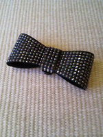 表側にスタッズが散りばめられているリボンのシュークリップ。