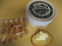 これは物産展で行列ができているので思わず並びました。クリームチーズのケーキをラスクに載せていただきます。