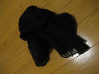 黒は着回しが利いて一枚持っていると重宝します。ちょっと寒いときでも首元にまくと暖かいし、出先で持っていると便利です。