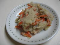 おから和えです。ヘルシーなおからを使った料理はダイエットにもってこい。安くてお財布にもうれしいです!