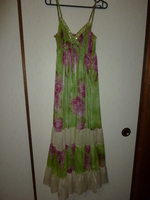 マキシワンピを探していた所、派手すぎなくきれいな花柄きみどりに一目惚れしました。
