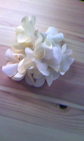花びらのような飾りが春らしいシュシュです。