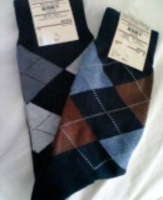 無印良品の靴下です。アーガイルの落ち着いた模様が入っているので何にでもあいやすく使いやすいので、色違いで購入しました。