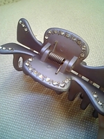 カラーは地味ですがラインストーンがキラキラして大人可愛いクリップです。食事中や仕事の時、髪をまとめるのに便利♪