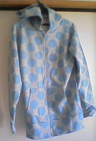 水色ドットのフードつきロング丈パーカーです。