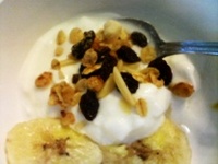 ダイエット中のおやつには、無糖のプレーンヨーグルトを食べます。栄養が偏らないように、乾燥バナナやレーズン、木の実なども摂るようにしています。フルーツ本来の甘みがあるのでおなかも満足です。