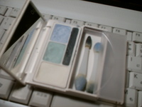 4色セットになっているのでわかりやすですね。ぼかしの白。お好みでグリーンかブルー。目のきわにはインパクトのある濃紺系?のカラーがひけます。