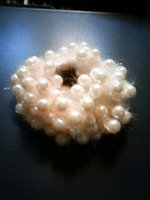 冬の間は暗い色のヘアアクセサリーを使っていましたが、春になるので、明るい感じの物を買いました。模造パールがたくさんついたヘアゴムです。1000円ちょっとしました。