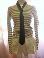 タイ付きボーダーカットソー