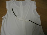 合わせやすい白なので春のジャケットのインに着ようと思っています。フリルと黒のラインのポイントが効いていて、仕事着にもよさそうです。