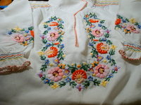 普通のデザインのフォクロア的なブラウスなのですが刺繍が見事なので切り取って額にでもおさめようかと大切に保管していました。