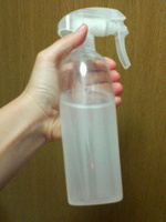朝起きたときに髪の毛を濡らすのに水を使っていたのですが、ある番組で紹介されていたのを見て、最近は水にトリートメントを混ぜて使っています(λ´∨`)。:+*゚