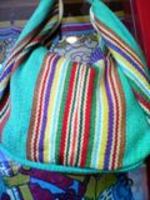 今年の秋流行のエスニック&フォークロアスタイルに、さりげなく派手めな斜めがけカバンを買いました。