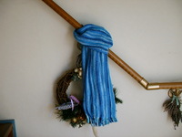 ブルーのグラデーションマフラー。模様がストライプになっているのでちょっと使い回しが気になります。