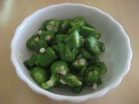 オクラは塩を摺り込みよく洗ってからレンジで2,3分チン。