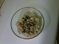 ![]() ![]() レビュー キレイ情報室 食べるのを我慢したくない時に 2008/9/2 (火) 14:33 nanami 評価:★★★★★★★ ![]() 食べるのが我慢出来ない、という時、 頼りにしているレシピがコレ。 えのきだけの小鉢で、本当に ダイエットを頑張りたい、という時 には、もっと量を増やすことで、 食べ過ぎを防ぐことも出来るかと 思います。 電子レンジを使って調理するので、 時間も5分程度、 「暑くてキッチンにいたくない」 「火を使う料理はイヤ!」 なんていう時にも、おススメ ですよ。 材料は、 えのきだけ(1袋) たらこ茶漬けの素(1/2袋) 酒(大さじ1) です。 作り方は、 1 えのきだけの根元を 切り落とし、半分に切る。 かたまりになっている ところがあれば、手で裂く。 2 電子レンジ可能な器に えのきを入れてお酒をかけ、 えのきがやわらかくなるまで 加熱する(2〜3分程度) 3 たらこ茶漬けの素をかけて 出来上がり という、本当に手軽な一品です。 お試しあれ!! コメント(0) ダイエットレシピ 戻る キレイナビ![]() |