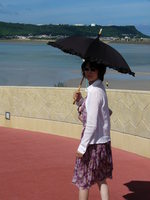 沖縄の紫外線に焦げそうな暑さの中外を歩くのは一分でも辛いので、日傘プラス、薄手のジャケットをはおりました