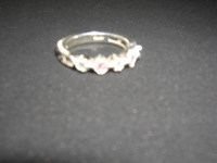 小指用の指輪です。キュービックジルコニアが5石、透明3とピンク2が付いています。