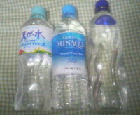 写真は、左から”サントリー天然水”、”アクアセラピー ミナクア”、”ティナント”です。