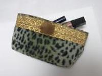 ゴールドレース・ブラウンファー付きのヒョウ柄ポーチ☆