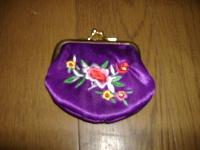 お気に入りファッションアイテム紹介。おばあちゃんにもらった中国旅行土産のがま口の小銭入れです。財布はいらないけど、ちょっとお使いにというときに連れて行きます。紫の光沢ある生地にお花の刺繍でなかなかかわいい。がま口のしまりがちょっと悪いのが困りものです。