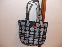 黒地にシルバーの大きなドット柄で、けっこういろんな服に合います。汚れが目立たないし、内ポケットもいっぱい付いてて超便利!