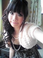 黒髪に合うようにベージュのファーボレロにレースドレスです。